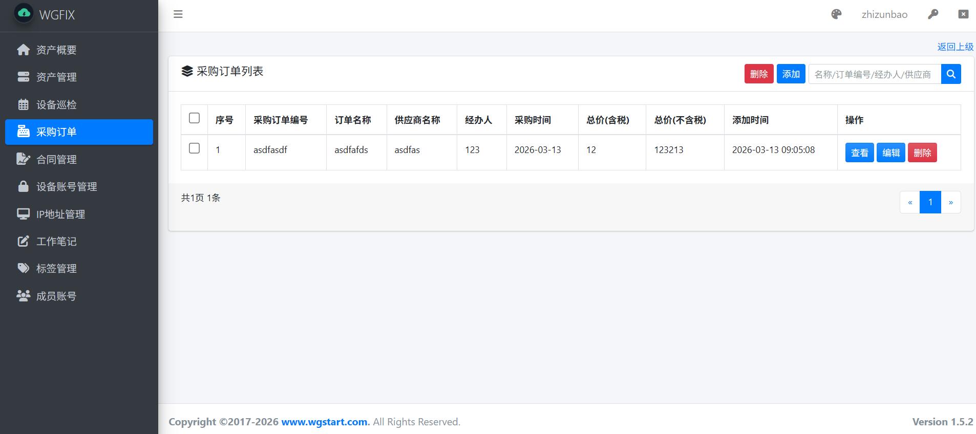 WGFIX的采购订单模块,是一个用于管理我们的采购信息的模块,支持上传多个附件